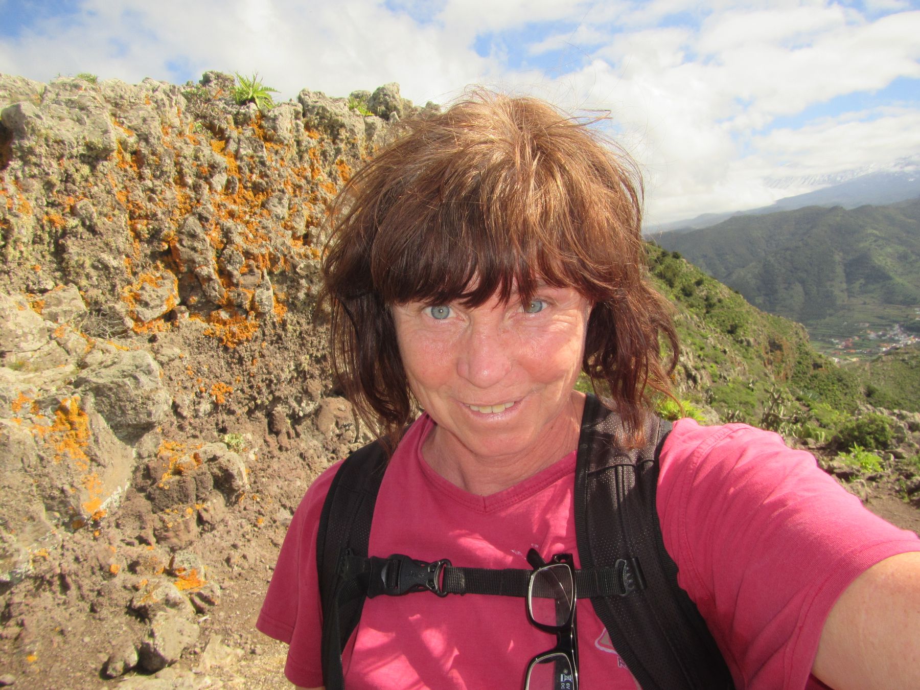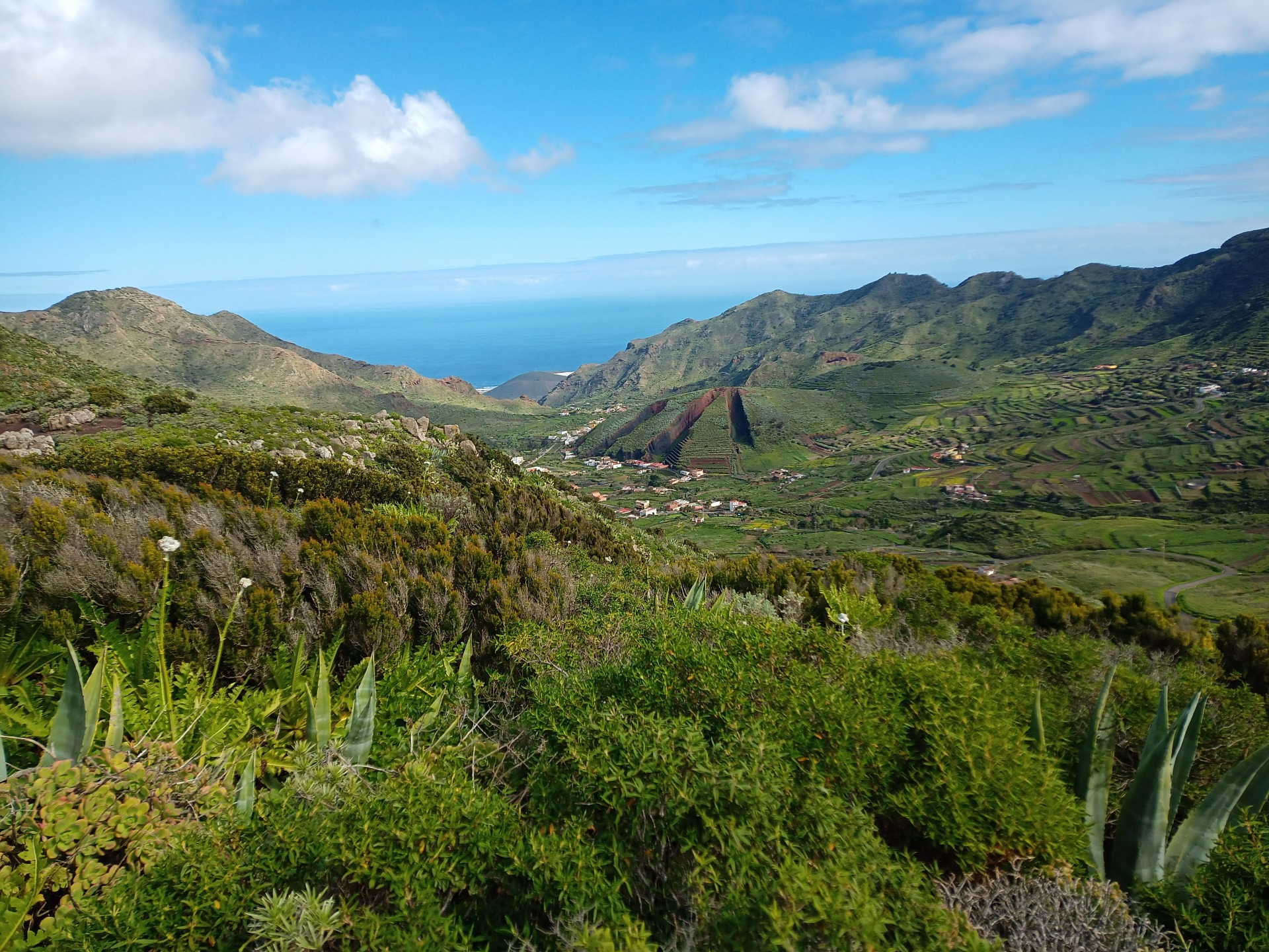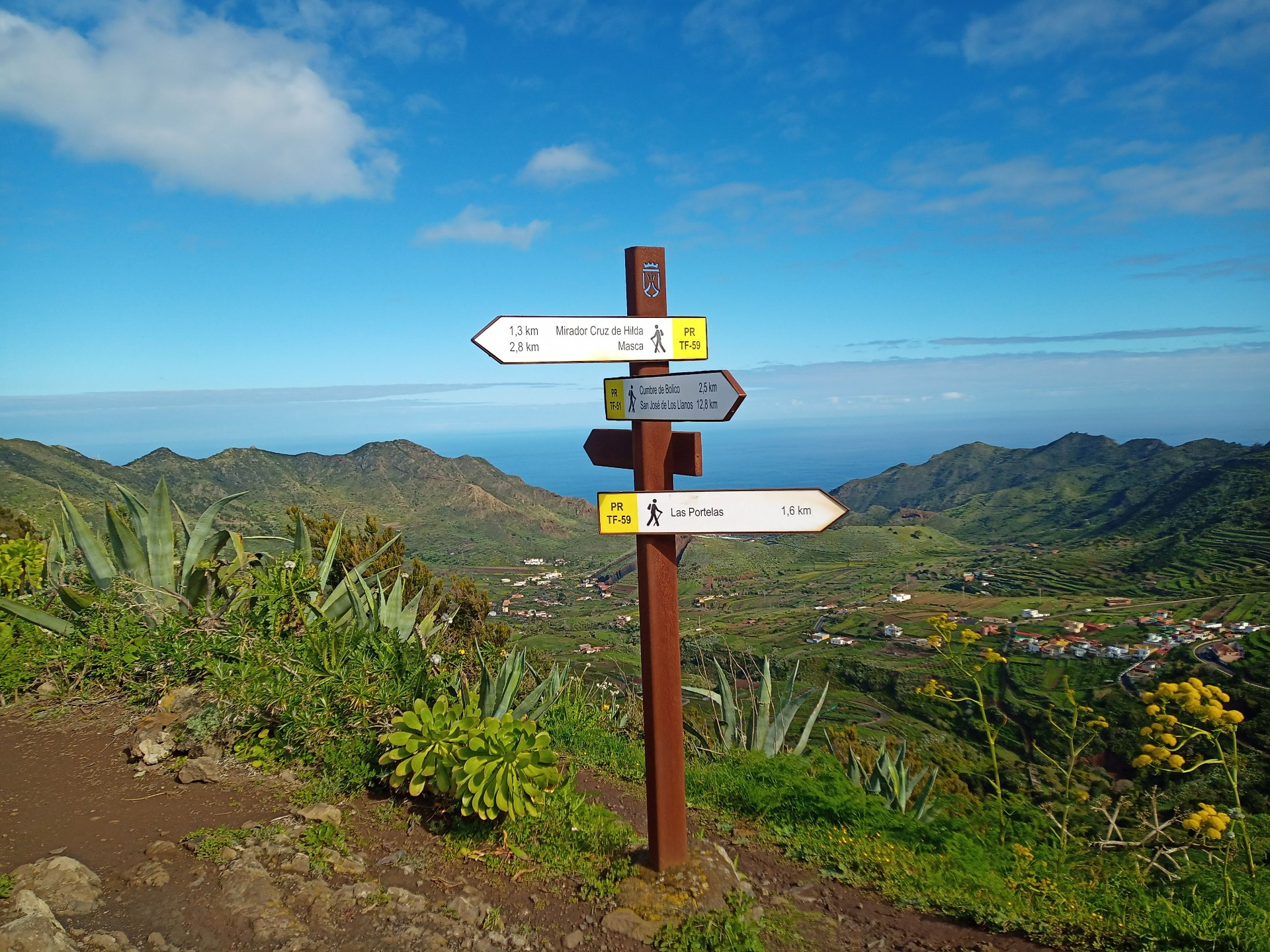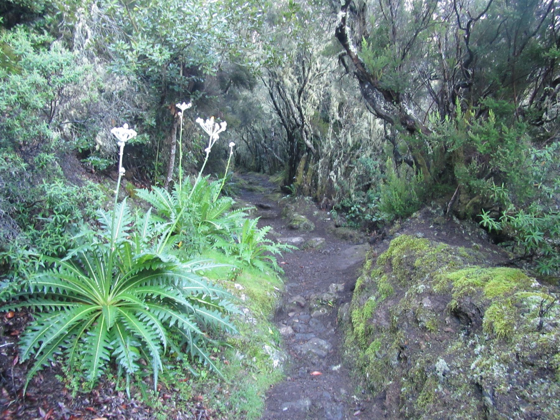 Parádní jednodenní trek po hřebenu Bolico. Z albergue po TF 56 na Cumbre Bolico, většinou lesem, divukrásným podotýkám, pak po hřebenovce TF 51 s výhledy do obou údolí, na Mascu, na zasněžené Teide a na Gomeru, naprostá paráda každý okamžik. Největším výkonem byl výstup na Baracán. Za vesničkou Teno Alto se krajina mění, zvolna se svažuje k pobřeží, celá zelená a šťavnatá, což oceňují nejen oči návštěvnice, ale hlavně kozy, nikoliv téže návštěvnice, ale místních campesinos - vesničanů, kteří mi hbitě prodali sýr. V první chvíli sice nebudil důvěru, protože byl rustikálně ušmudlaný, ale pak jsem ho vyhodnotila jako nejlepší jídlo pobytu. Fakt skvělej. Poslední úsek k majáku jsem umístila na vedlejší stránku.