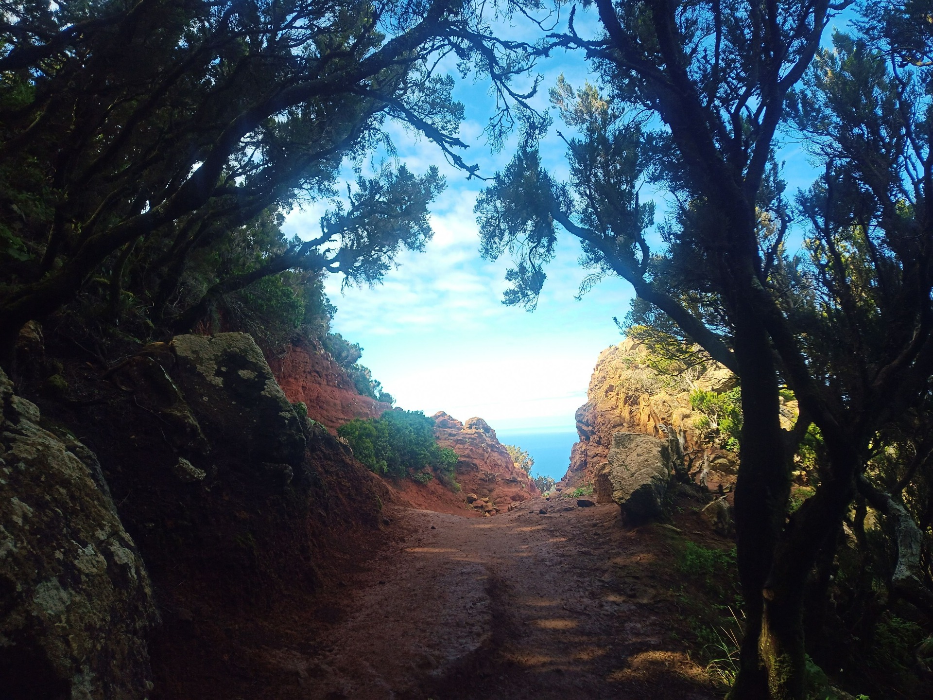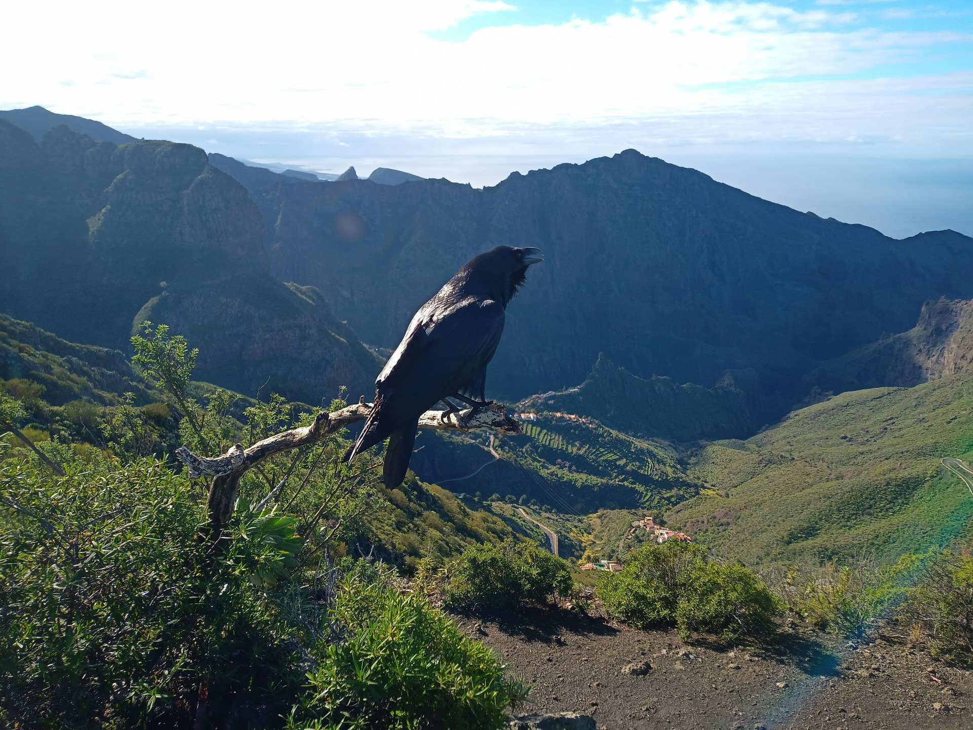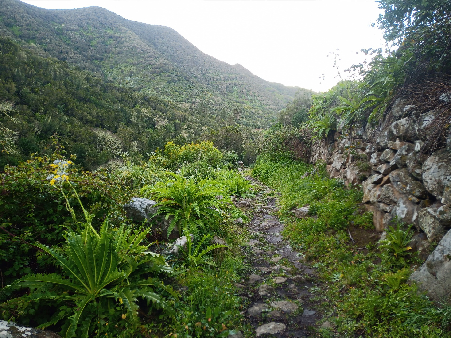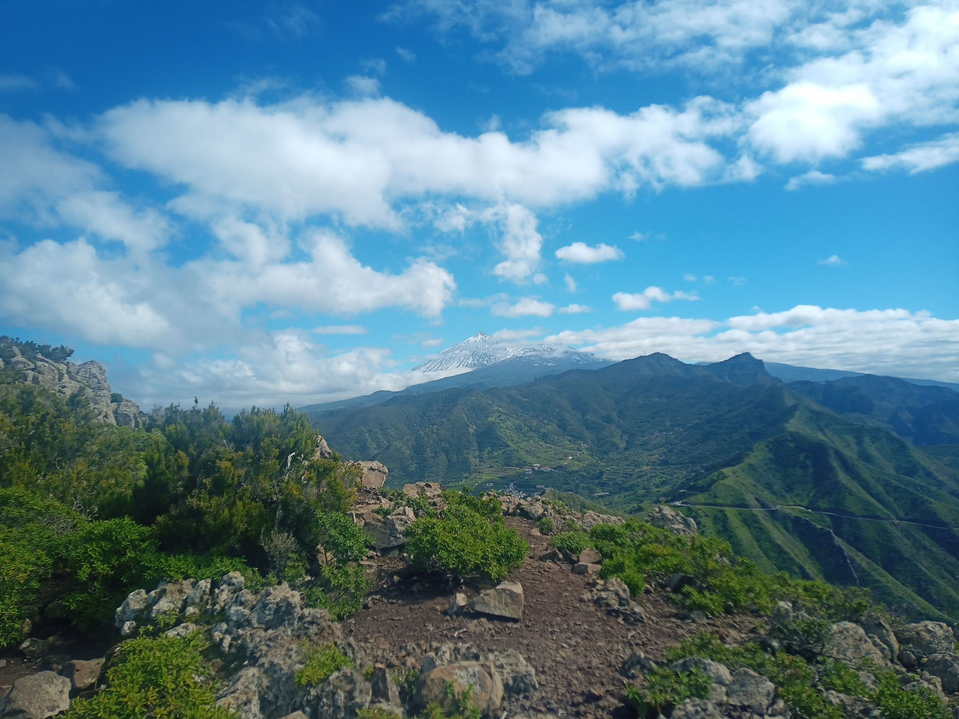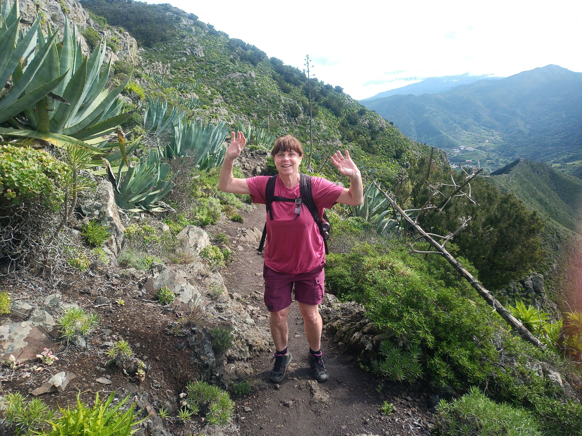 Parádní jednodenní trek po hřebenu Bolico. Z albergue po TF 56 na Cumbre Bolico, většinou lesem, divukrásným podotýkám, pak po hřebenovce TF 51 s výhledy do obou údolí, na Mascu, na zasněžené Teide a na Gomeru, naprostá paráda každý okamžik. Největším výkonem byl výstup na Baracán. Za vesničkou Teno Alto se krajina mění, zvolna se svažuje k pobřeží, celá zelená a šťavnatá, což oceňují nejen oči návštěvnice, ale hlavně kozy, nikoliv téže návštěvnice, ale místních campesinos - vesničanů, kteří mi hbitě prodali sýr. V první chvíli sice nebudil důvěru, protože byl rustikálně ušmudlaný, ale pak jsem ho vyhodnotila jako nejlepší jídlo pobytu. Fakt skvělej. Poslední úsek k majáku jsem umístila na vedlejší stránku.